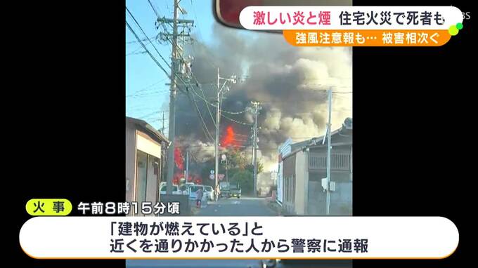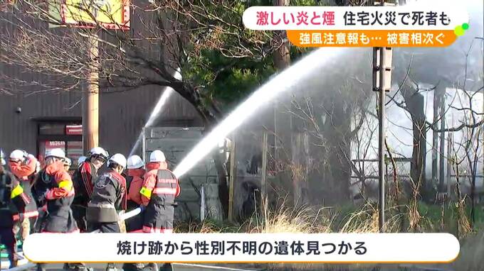 静岡県内では、1月12日朝早くから広い範囲で強風注意報が出る中、火事が相次ぎました。牧之原市の住宅火災では、焼け跡から1人の遺体が見つかり、浜松市の火事では、70代の男性が心肺停止で病院に運ばれています。