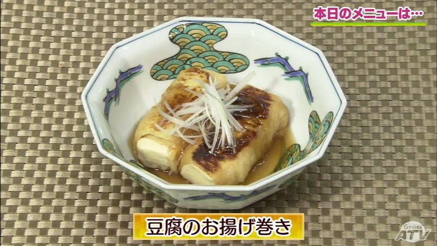 豆腐のお揚げ巻き お豆腐を油揚げで巻いたヘルシーな一品。絹ごし豆腐でフワフワの仕上がりです。【出演】料理研究家 遠藤ゆかり