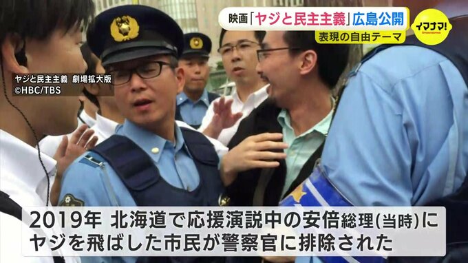 総理大臣の遊説中に“ヤジ”を飛ばしたことで警察官に排除された問題を追い表現の自由をテーマにしたドキュメンタリー映画が広島でも上映されています。