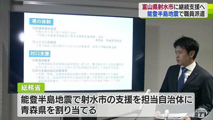 総務省は、能登半島地震で射水市の支援を担当する自治体に青森県を割り当てていて、今後も継続した支援に乗り出すことになります。
