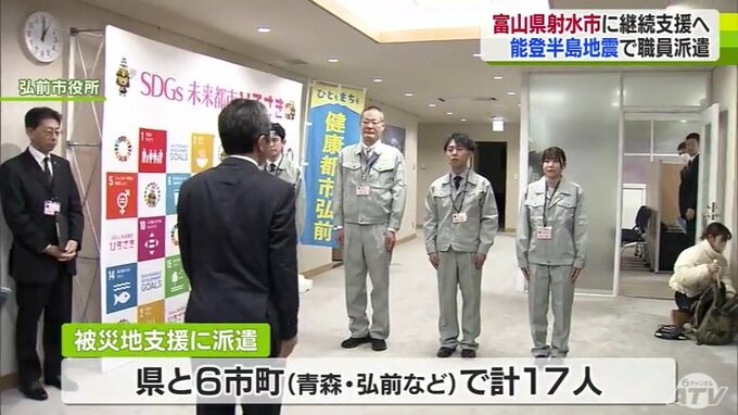 1月14日~29日まで能登半島地震の被災地支援に派遣されるのは、県と青森・弘前など6つの市と町から計17人です。このうち、弘前市では12日、職員4人の激励式が行われました。