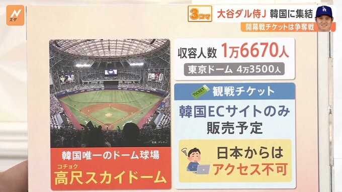 開幕戦はお隣・韓国で開催されます。カードはドジャース対パドレスということで、大谷選手以外にも、新加入の山本由伸選手。パドレスにはダルビッシュ有投手、新しく入った松井裕樹投手と、まさに侍ジャパンが集結するわけですよね。