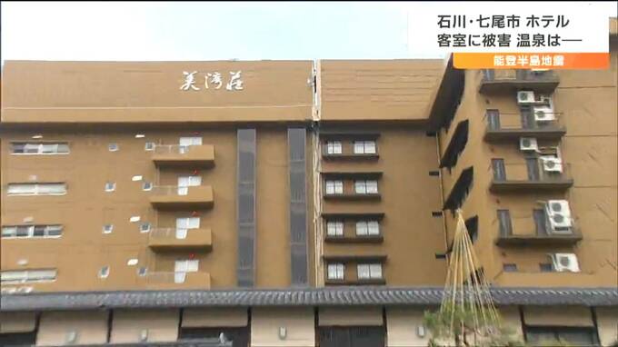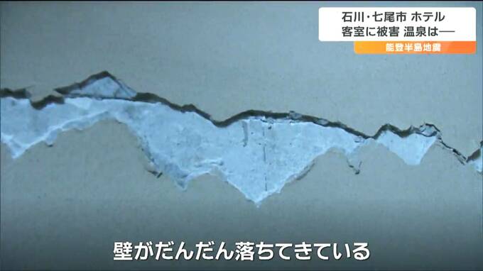 「県内有数の温泉地、和倉温泉。こちらのホテルは8階建てのホテルの真ん中、長い亀裂が入ってしまっています」