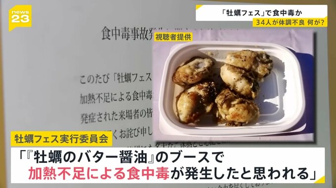 牡蠣フェスの実行委員会によりますと、これまで(1月13日放送時点)にイベントを訪れた34人が体調不良を訴えているということです。