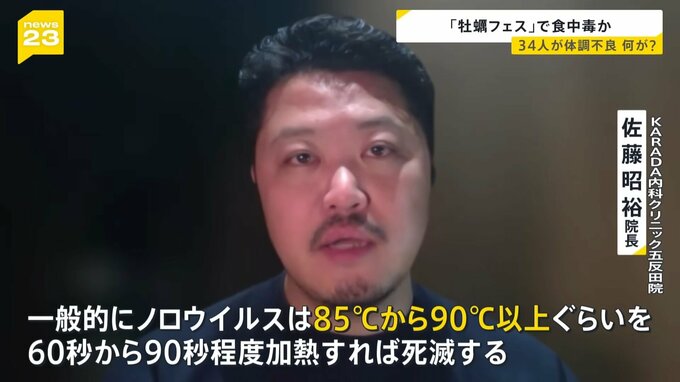 「牡蠣そのものにノロウイルスがあって皆さんがそれを食べてうつったのか、調理をする方の手とかまな板とかにウイルスがくっついてしまって、そこで調理を繰り返し行ったことで広がったか、の2パターンがあると思う。一般的にノロウイルスは85℃から90℃以上ぐらいを、60秒から90秒程度加熱すれば死滅すると言われている」