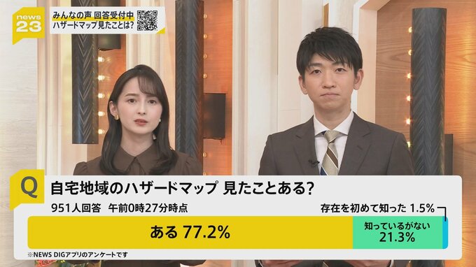 NEWS DIGアプリでは『自宅のある地域のハザードマップを見たことがあるか』などについて「みんなの声」を募集しました。