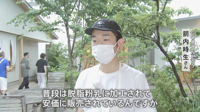 「普段は脱脂粉乳に加工されて安価に販売されているんですが、こちらをアップサイクルさせてお菓子にした商品です」