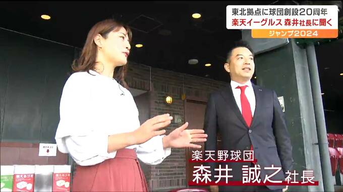東北唯一のプロ野球チームとして歩みを続けてきた東北楽天ゴールデンイーグルスが今年、球団創設20周年となります。楽天野球団の森井誠之社長が、チームと職員一丸となって目指すのは、「顔の見える球団」です。それはいったいどういうことなのか、森井社長に話を聞きました。