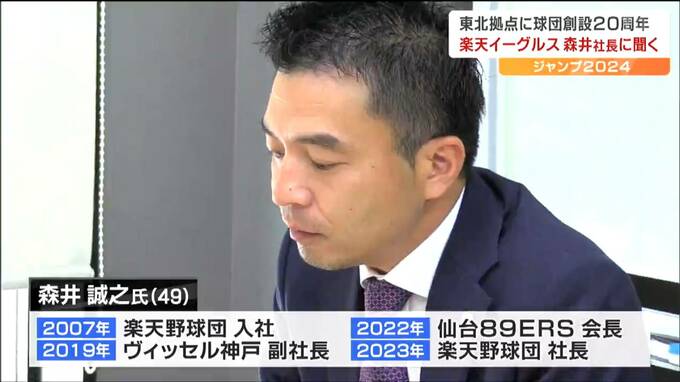 野球のみならずヴィッセル神戸、仙台89ERSとスポーツ界でキャリアを積んだ森井誠之氏。去年夏、40代で楽天野球団の社長に抜擢されました。