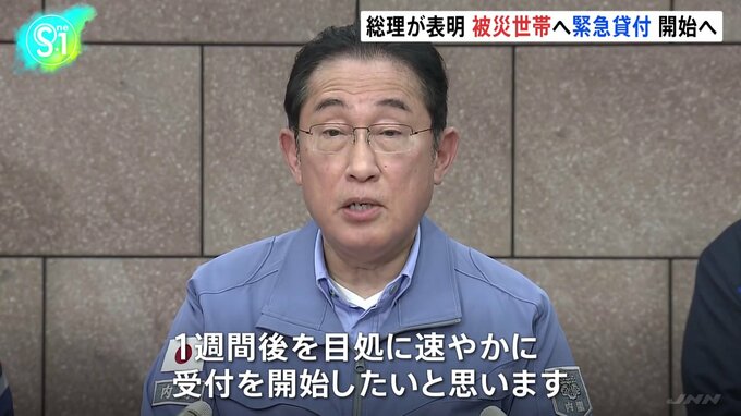 石川県の被災地を訪問した岸田総理は、「被災世帯へ緊急小口資金の特例貸付を1週間後をめどに開始する」と表明しました。岸田総理「被災世帯に対する緊急小口資金の特例貸付について、1週間後をめどに速やかに受付…