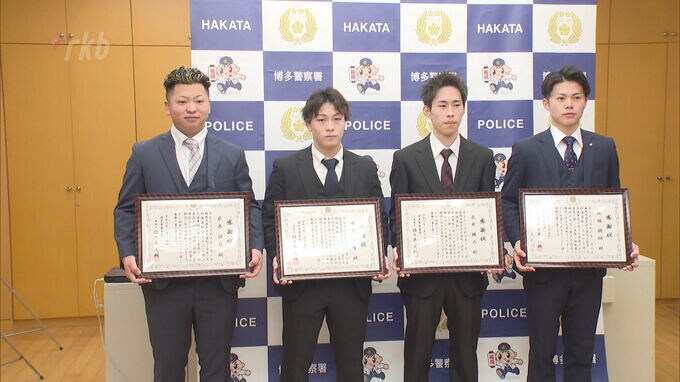 飲酒運転で事故を起こし逃走していた男を取り押さえた男性4人に警察から感謝状が贈られました。4人は直前まで福岡市の「はたちのつどい」に参加していました。 博多警察署から感謝状を贈られたのは、福岡市博…