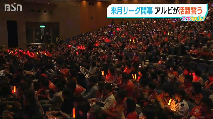 神社で祈願したあとは後援会主催の激励会に参加。およそ1400人のサポーターを前に、選手らは今年の活躍を誓っていました。