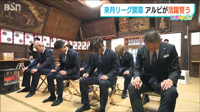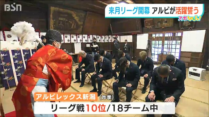 サッカーアルビレックス新潟が来月に控えたリーグ開幕に向けて13日、新潟市の神社で必勝を祈願しました。