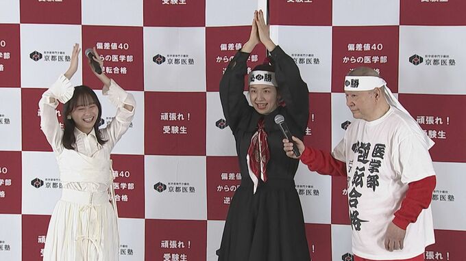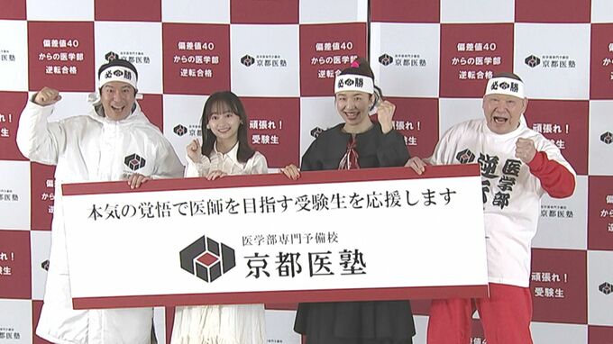 イベントは、医学部専門予備校「京都医塾」が、これから医学部受験に挑む受験生にエールを送るもので、浜口親子が“気合いだ!気合いだ!気合いだー!合格だ!合格だ!合格だー!“とおなじみのコールで力強く応援。