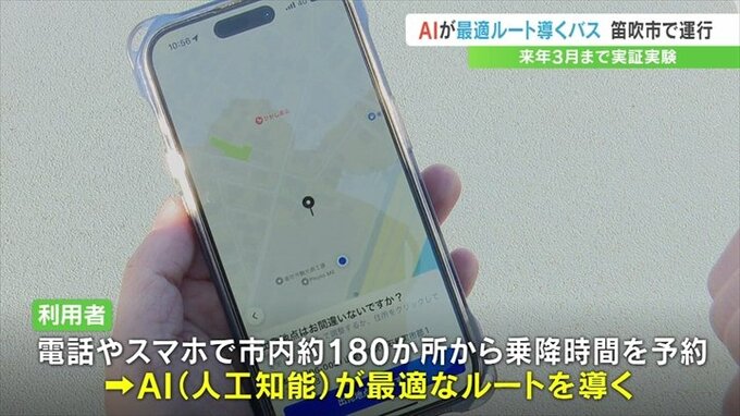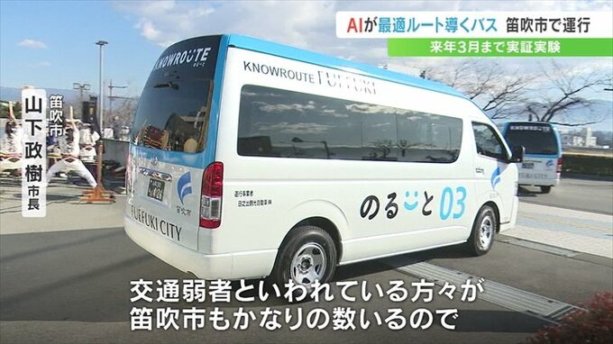 人工知能のAIが考える最適なルートで運行する乗り合いバスの実証実験が山梨県笛吹市で始まりました。