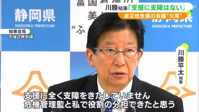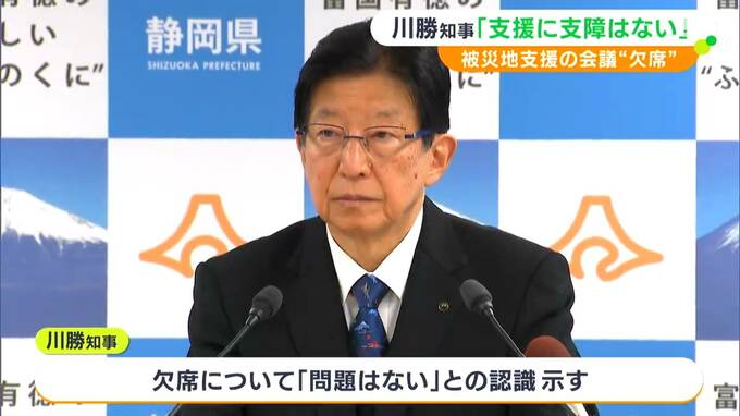 川勝知事は欠席したことについて「問題はなかった」との認識を示し、被災地のために仕事をしていて失礼なことをしたとは思っていないと話しました。