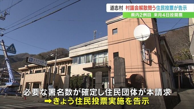 県市町村課によりますと、県内の市町村で議会解散を問う住民投票が行われるのは2012年の西桂町以来、2例目です。