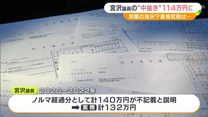 自民党の派閥の政治資金パーティーをめぐる裏金問題。宮沢議員は、これまでパーティー券のノルマを超えた分として、2020年から2022年の3年間で合わせて140万円を政治資金収支報告書に記載していなかったと説明していましたが、実際、記載していなかった総額は132万円だったということです。
