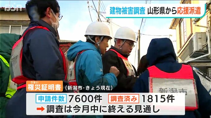 新潟市によりますと、15日現在、罹災証明書の申請件数は7600件あり、このうち調査を終えたのが1815件。調査は今月中に終える見通しです。