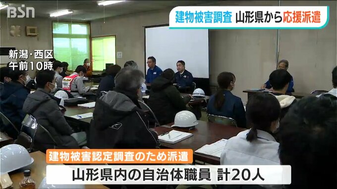 新潟市内で建物被害の認定調査を行うため派遣されたのは、山形県内の自治体職員合わせて20人です。