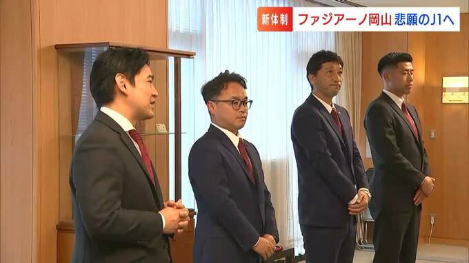 Jリーグのシーズン開幕までおよそ1か月となりました。新体制となったサッカーJ2、ファジアーノ岡山の選手らが岡山県庁を訪問し、J1昇格を誓いました。