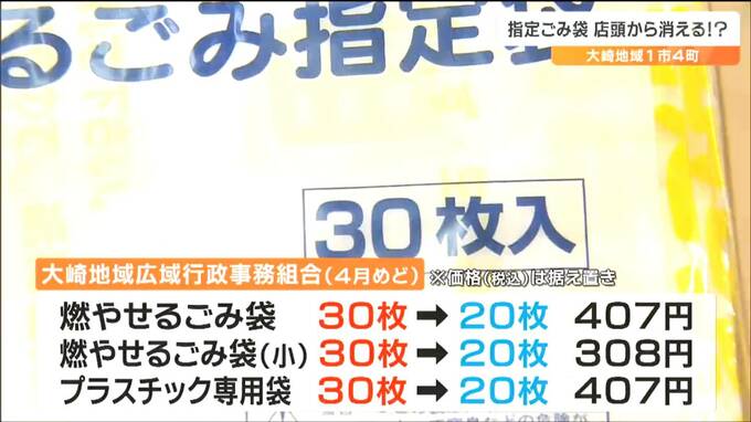 品薄の原因は、ごみ袋の「実質値上げ」です。大崎地域1市4町のごみ処理を担う広域行政事務組合が、「4月をめどに値段は変えず、ごみ袋の枚数を30枚から20枚に変更する」と、1月4日に発表したのです。
