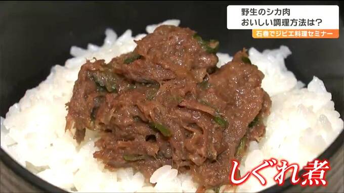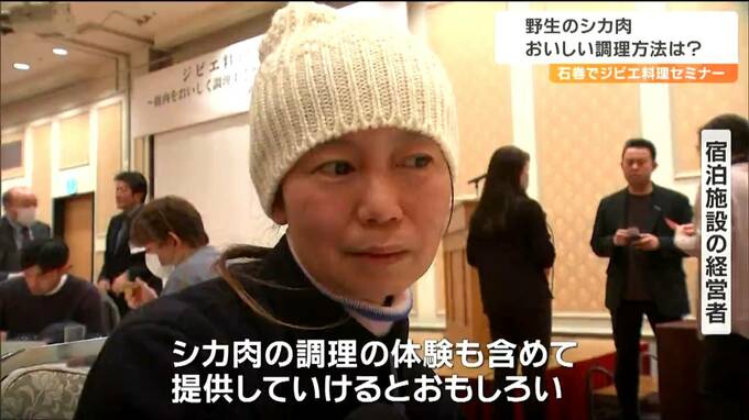 宮城県石巻地域で捕獲されたニホンジカの消費拡大を目的とした「ジビエ料理セミナー」が15日開かれました。飲食店の店主らが、野生のシカ肉をおいしく調理するための知識を学びました。
