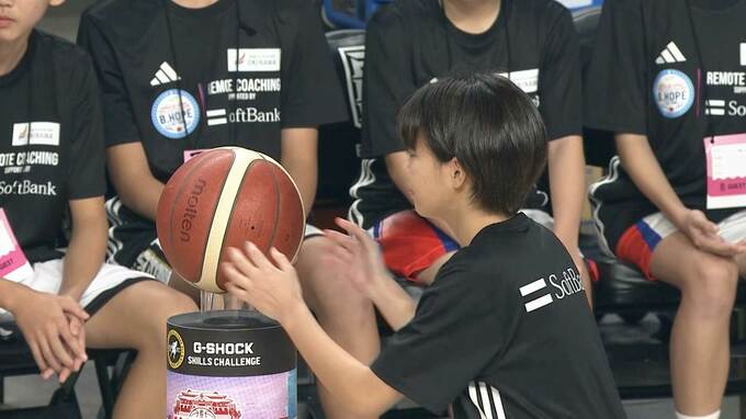 その夢の球宴に先立って行われた「スキルズチャレンジ」に石垣市立大浜中学校バスケットボール部の選手らが挑んだ。