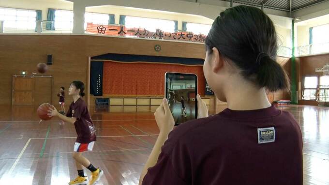 大浜中学校の選手が自分たちのプレーをタブレットで撮影し、その映像をチェックしたゴールデンキングスのコーチがオンラインで指導を定期的に行ってきた。