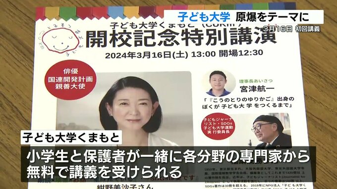 今年3月、初めて開かれる「子ども大学くまもと」の講義は広島の原爆をテーマに行われることが明らかになりました。「子ども大学くまもと」は小学生とその保護者が、一緒に各分野の専門家から無料で講義を受けられ…