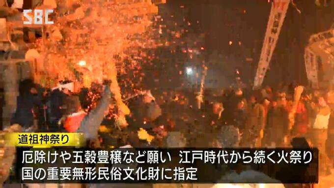 道祖神祭りは、厄除けや五穀豊穣などを願い、江戸時代から続く伝統の火祭りで、国の重要無形民俗文化財に指定されています。