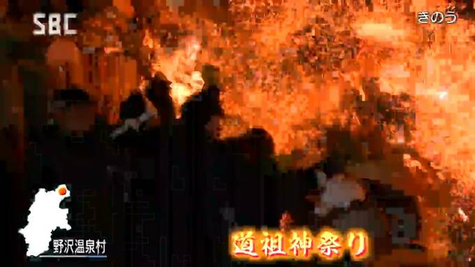 長野県野沢温泉村で15日夜、伝統の道祖神祭りが行われました。