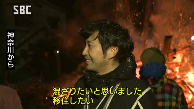 雪が降りしきる中で行われた野沢温泉村の道祖神祭り。