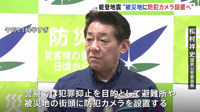 きょう、松村国家公安委員長は、能登半島地震の被災地に防犯カメラを設置していくと明らかにしました。被災地では住宅への空き巣などが、きのうまでに22件確認されています。松村祥史 国家公安委員長「警察では犯…
