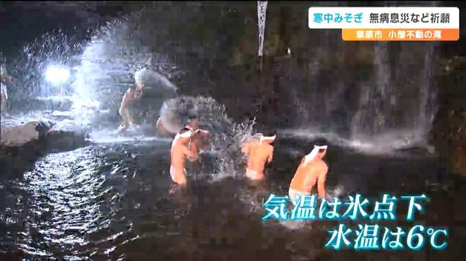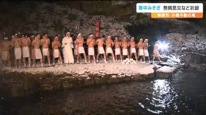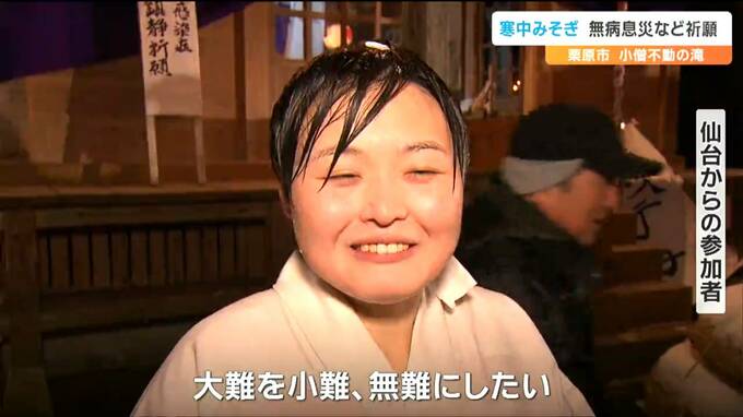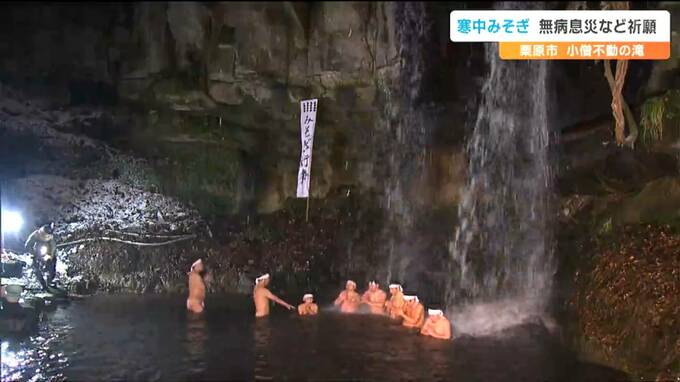 滝に打たれ身を清める小正月の行事です。宮城県栗原市で15日夜「寒中みそぎ」が行われ、凍てつく寒さのなか参加者が無病息災などを祈願しました。