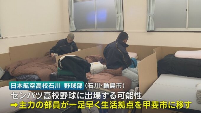 15日、センバツ高校野球に出場する可能性がある日本航空高校石川の主力の野球部員が一足早く、甲斐市のキャンパスに活動の拠点を移しました。