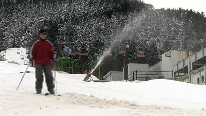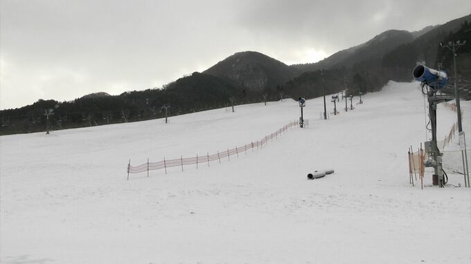 一方、新見市のいぶきの里スキー場は一日でおよそ160トンの雪が作れる人工造雪機のおかげで先月19日にオープン。4コース中1本のみ走行可能となっており雪不足に悩まされながらも営業を続けています。