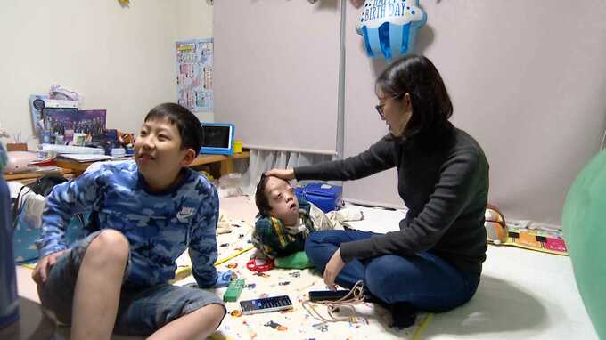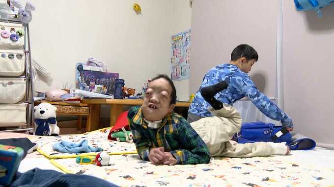 3歳だった姉の水葵さんは大学生になった。そして弟の大生くん(11)も生まれ、家族5人になった。じゃれあい、冗談を言い合いながら、姉の水葵さんと弟の大生くんが、友喜さんの顔を拭いたり痰の吸引をしたり、3人姉弟は、とても仲が良い。夕食の準備をしながら、由美さんは3人を愛おしそうに見つめた。