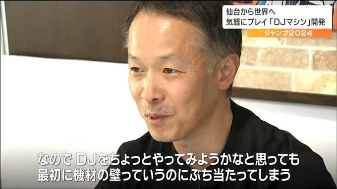 「DJ機材って、基本的に大きいものが多いですね。例えば、このテーブルにのるかのらないかぐらいの機材を一通り揃えて、全部繋がなきゃいけないんです。なので、DJをちょっとやってみようかなと思っても、最初に機材の壁っていうのにぶち当たってしまうんですね。それをどうやったら簡単にできるか、どうやったら初心者の人でもDJプレーの練習ができるかなって考えついたのが、このオールインワンのDJシステムです」