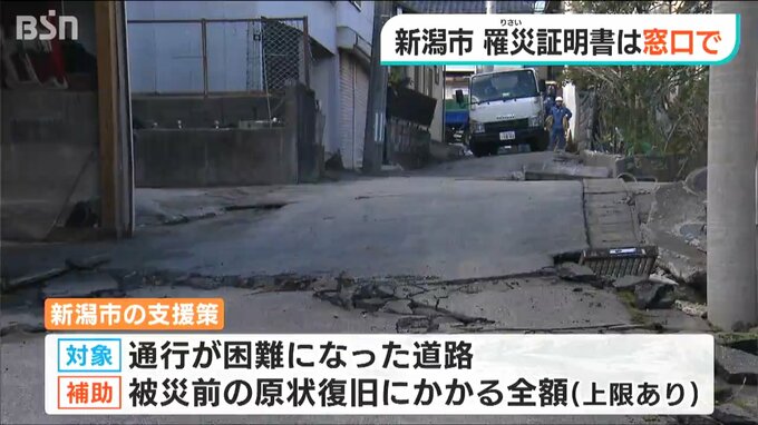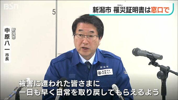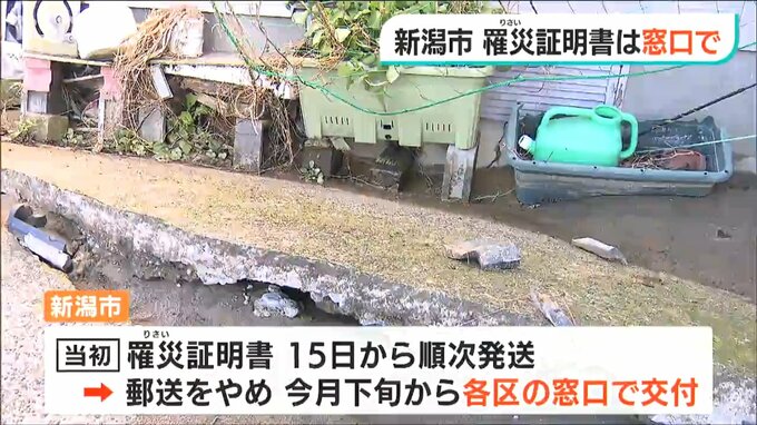 こうした中、新潟市は罹災証明書について当初、15日から順次郵送するとしていましたが、郵送をやめ1月下旬から各区の窓口で交付することにしました。被災者の疑問などに対面で対応したいというのが理由で、住宅の応急修理や市営住宅の提供など、様々な相談に対応するワンストップ型の窓口で交付するということです。