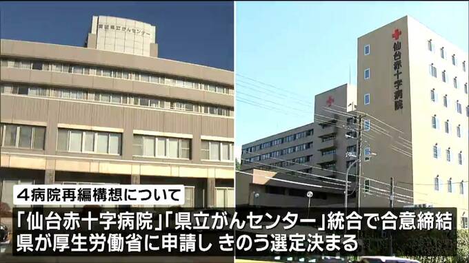 「重点支援区域」は、病院の適正配置などを進める地域に対し、国が助言や財政支援を優先的に行っていく制度です。県は、4病院再編構想のうち仙台赤十字病院と県立がんセンターの統合について、去年12月、基本合意を結んだことを受け、厚生労働省に申請し16日、選定されることが決まりました。