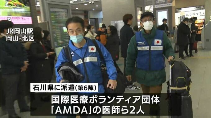 能登半島地震の発生からきょうで17日目です。岡山市の国際医療ボランティア団体「AMDA」が被災地に医師ら2人を派遣しました。