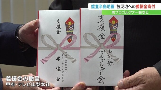 山梨県内のプロゴルファーで作る団体などから、能登半島地震の被災地への義援金がテレビ山梨厚生文化事業団に寄せられました。