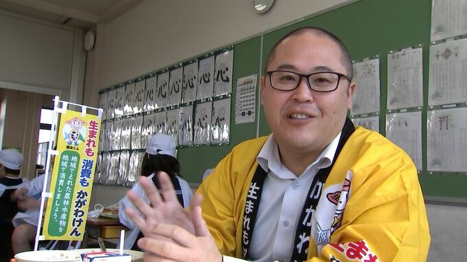 生産者自らが、農産物・畜産物の魅力を子どもたちに語ります。県内の小中学校へ給食の食材費の一部を支援している香川県が「県産食材を通じて子どもたちの食育を」と宇多津北小学校で初めて行いました。