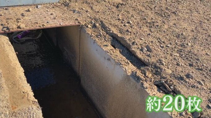 16日朝、山梨県中央市の畑で、水路をふさぐ鉄板が大量になくなっていることが確認されました。