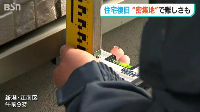 能登半島地震で新潟県内は家が傾くなどの被害が出ています。こうした傾いた家の調査を、東日本大震災後でも住宅の地盤改良工事を行った長岡市の企業が始めました。ただ住宅密集地で起きた家の傾き、復旧には時間がかかると見られています。