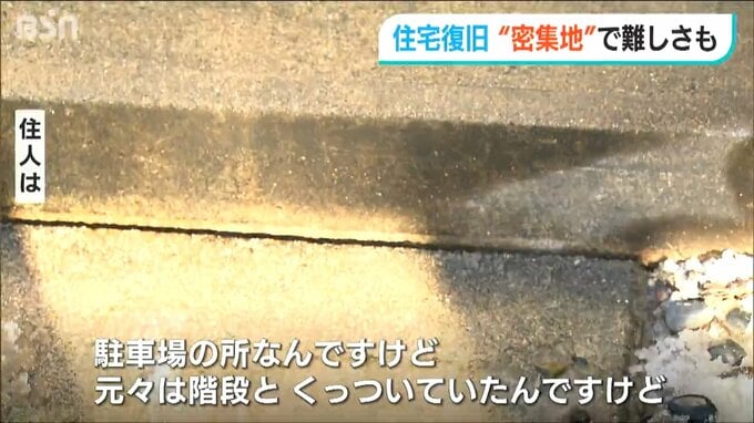 「駐車場のところなんですけど、元々は階段とくっついていたんですけど、液状化が地震の影響で隙間が…」