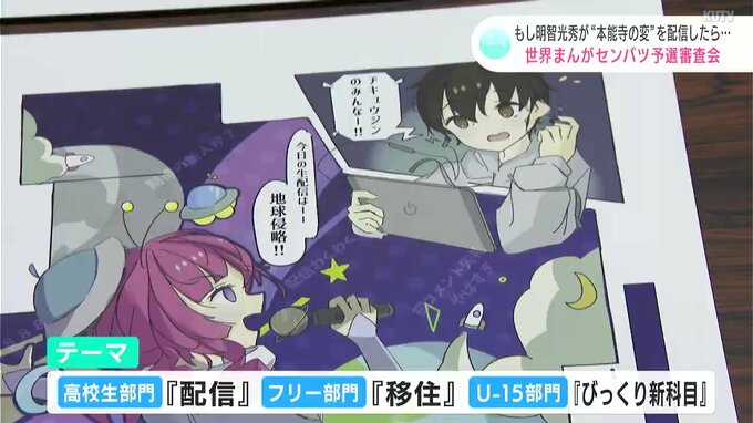 作品は、1枚の紙でストーリーが完結する「1枚漫画」で、テーマは、高校生部門が「配信」、フリー部門が「移住」、新設された14歳以下の部門は「びっくり新科目」です。