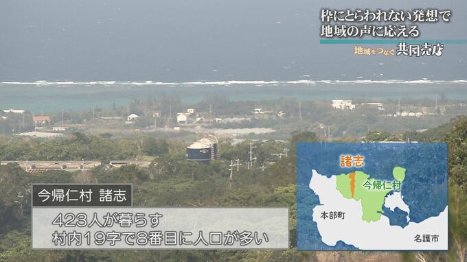 今帰仁村の西側に位置する「諸志」。400人あまりが暮らす、村内で8番目に人口が多い集落です。そこで67年間住民の暮らしを守ってきたのが「諸志共同売店」です。