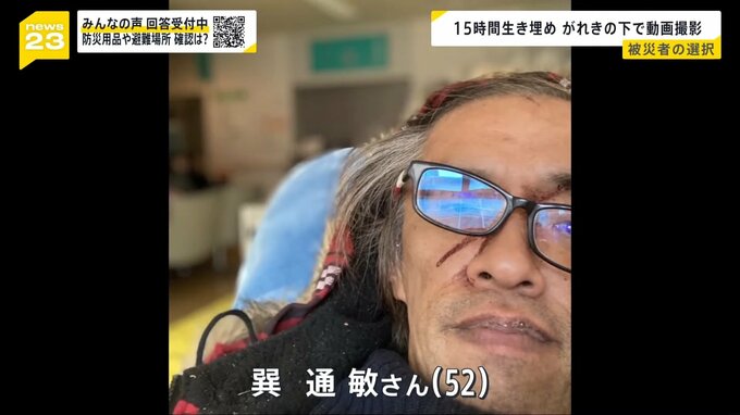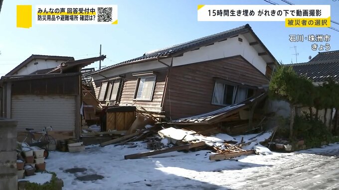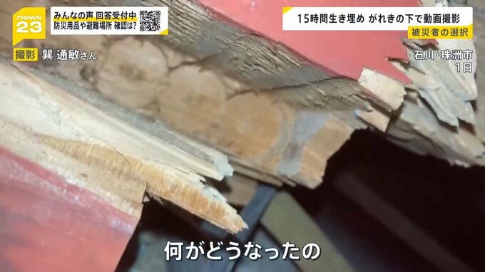 石川県珠洲市で自宅が倒壊し、およそ15時間、生き埋めになった男性。がれきの下で、救助を待つ様子をスマホで撮影していました。死を覚悟しながら撮った38秒間の動画。ようやくかかった1本の電話が命をつなぎました。